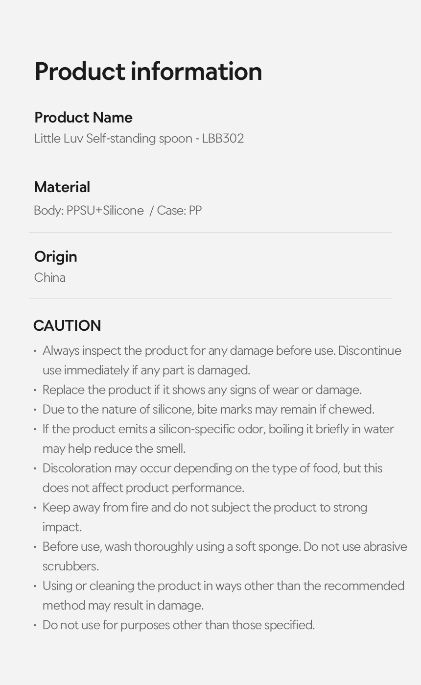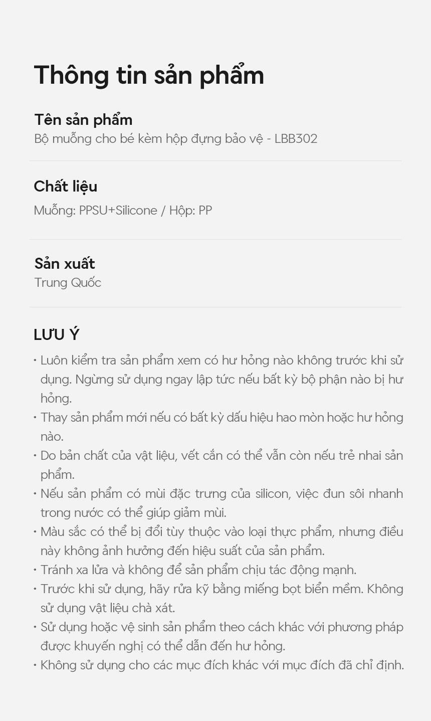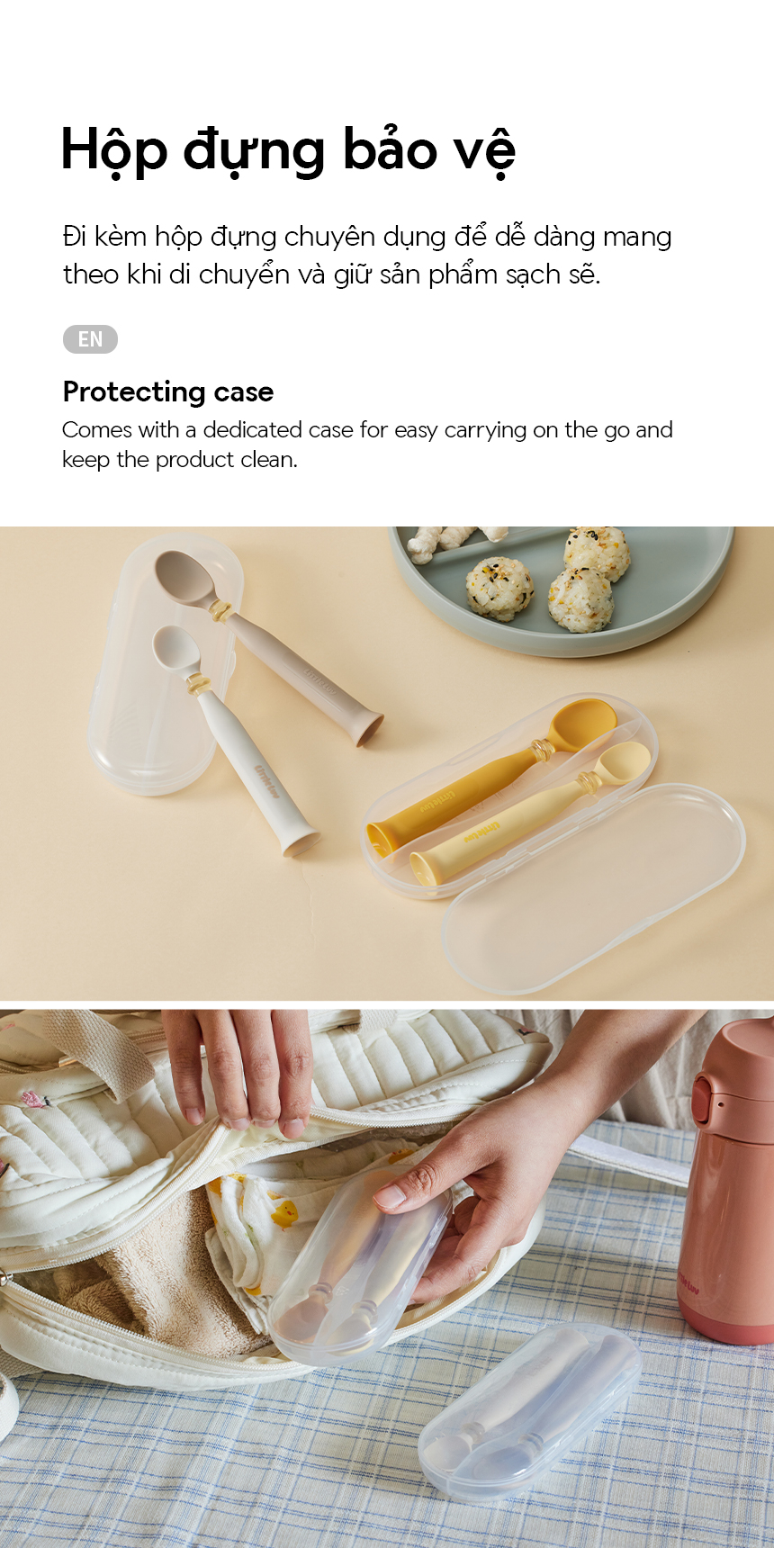 - Cấu tạo: Muỗng: PPSU+Silicone ; Hộp: PP