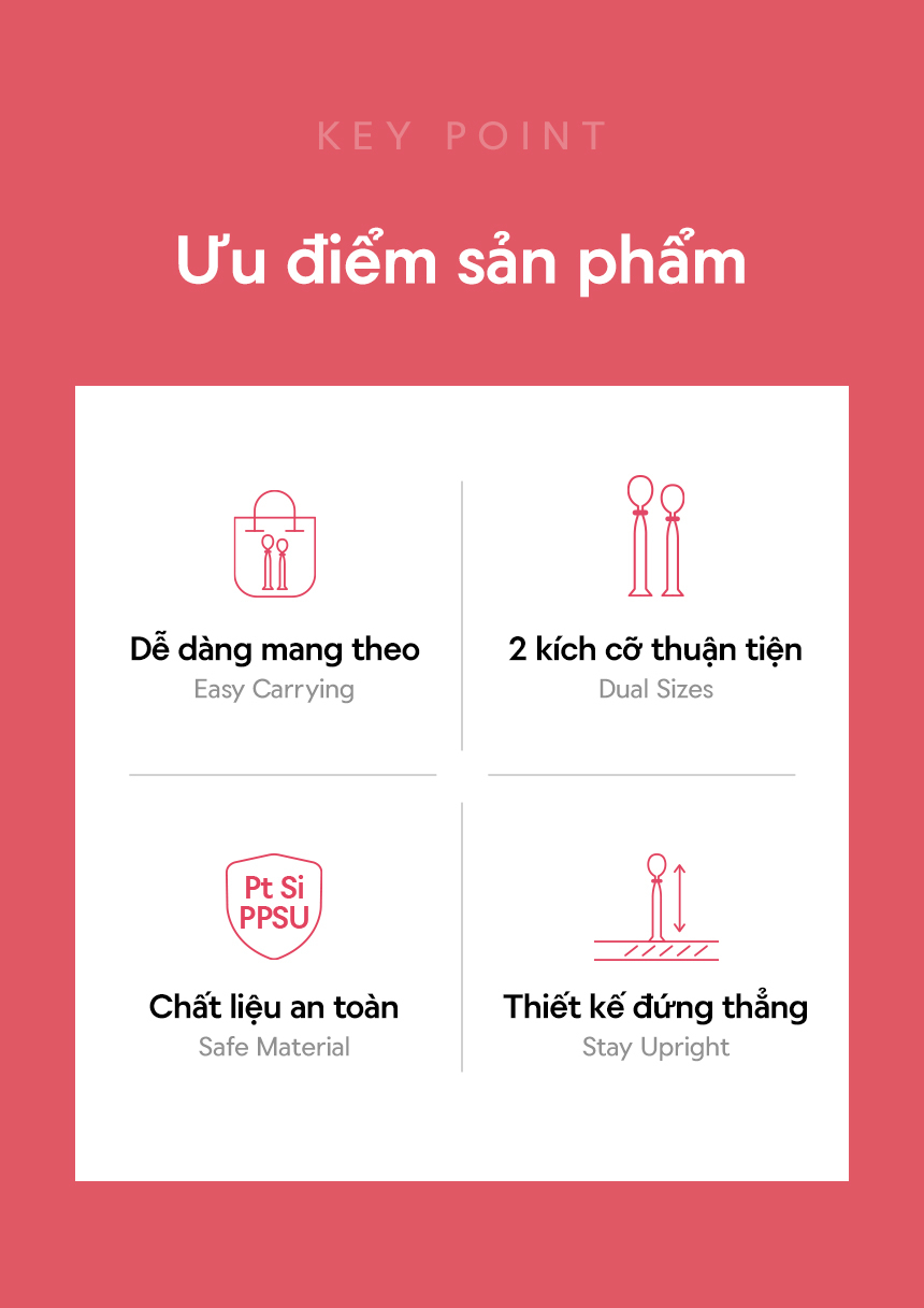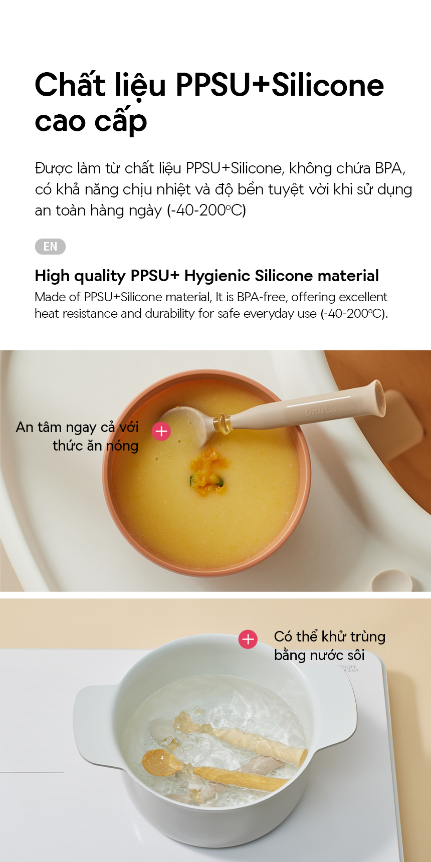 - Chất liệu PPSU+Silicone vệ sinh cao cấp: Được làm từ chất liệu PPSU+Silicone, không chứa BPA, có khả năng chịu nhiệt và độ bền tuyệt vời