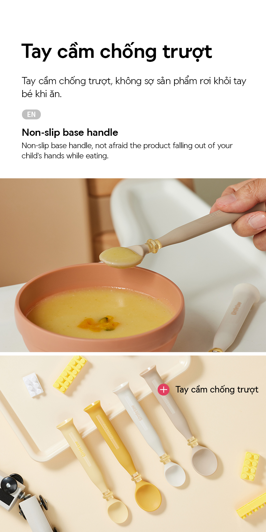 - Tay cầm chống trượt: Tay cầm chống trượt, không sợ sản phẩm rơi khỏi tay bé khi ăn.