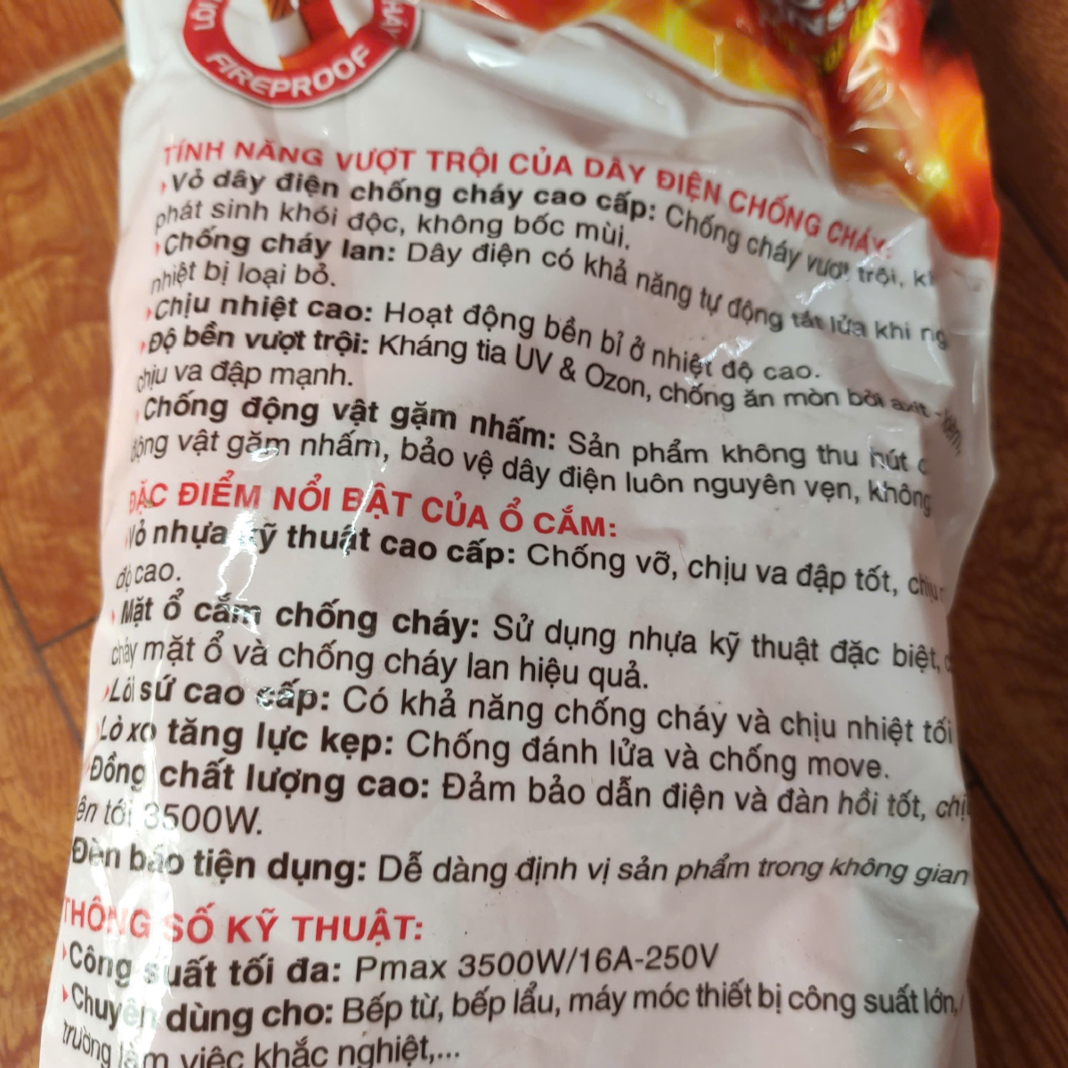 Chống cháy: Mặt ổ được làm bằng nhựa cách điện, chống cháy. Lõi sứ bền đẹp, chịu nhiệt tốt.